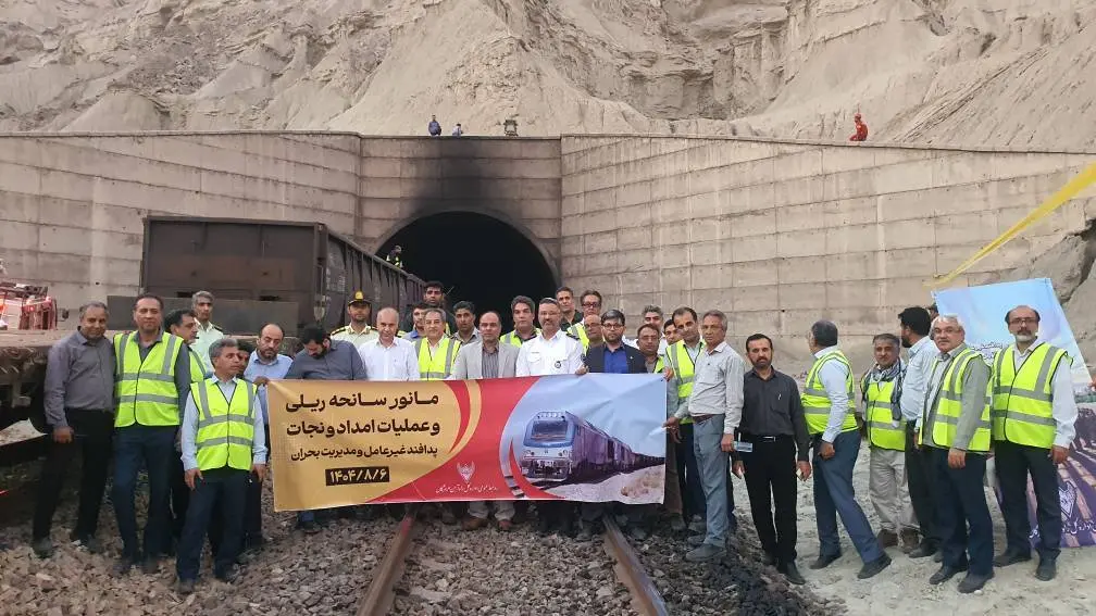 مانور عملیاتی پدافند غیرعامل در راه آهن هرمزگان با هدف سنجش آمادگی نیروهای امدادی در شرایط بحرانی، در تونل شماره ۲۵ برگزار شد و سناریوی فرضی آتش سوزی قطار باری با موفقیت مهار شد.